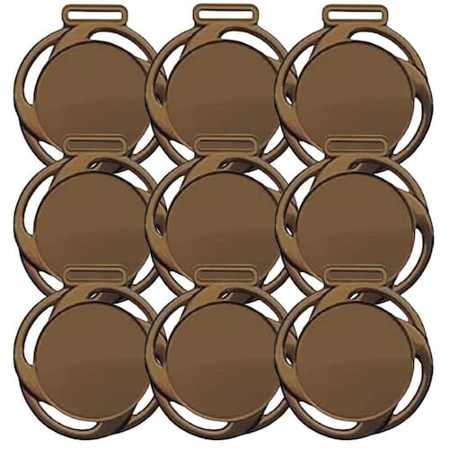 Medalha Rema Linha Ref. 273 80mm - Medalha redonda fundida em liga metálica de Zamac, com desenho interno polido e com frisos raiados, metalizada na cor dourada, prateada ou bronze com o tamanho de 80mm que permite a colocação de adesivo de 50mm.