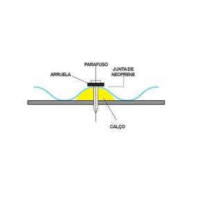 - Em estrutura de Madeira: Perfil 075/21 - Prego Galvanizado 18 x 27 mm Perfil 177/51 - Parafuso soberbo 5/16 x 110 mm Perfil Trapézio - Parafuso soberbo 5/16 x 110 mm - Em estrutura Metálica: Perfil 075/21 - Parafuso auto brocante 1/4 x 38 mm Perfil 177/51 - Parafuso auto brocante 1/4 x 76mm Perfil Trapézio - Parafuso auto brocante 1/4 x 63 mm Marca: Não Informado