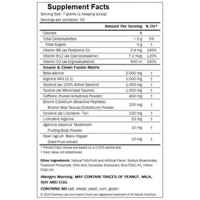 Fórmula Avançada: O Insane Clown combina uma variedade de ingredientes de alta qualidade para oferecer resultados extraordinários. Com 400mg de cafeína, 1000mg de Taurina, 1000mg de Arginina e 2000mg de Beta Alanina, esta fórmula única é projetada para aumentar sua resistência, força e foco durante os treinos.
