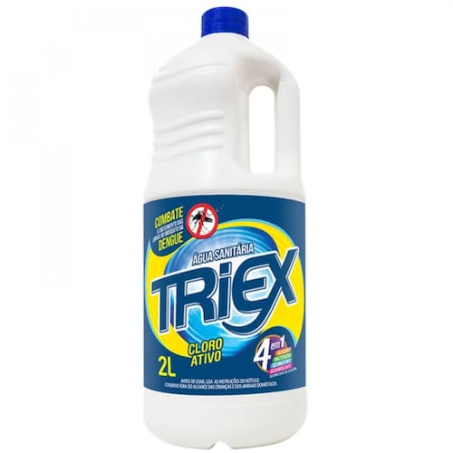 Características do produto: Nome: Água Sanitária Branca 2L Marca: Triex Volume: 2 litros Categoria: Limpeza Composição: Hipoclorito de sódio, tensoativo não-iônico e água