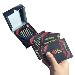 Gênero: espiritualidade, Oráculo. Tamanho da Mensagem: 7,50 x 9,00 cm Tamanho da caixa (Box): 8,00 cm x 10 cm x 2,80 cm Material: Papel Cartão Peso: 180 gramas Cores: Preto e Vermelho Edição: 1ª de 2025 Fabricado por: Meta venda em lote Peso 540 gramas