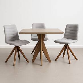 Kit com 3 Cadeiras Chanel Giratórias com Base em Madeira Castanho – Exclusiva Linho Alumínio 101 - Castanho -
