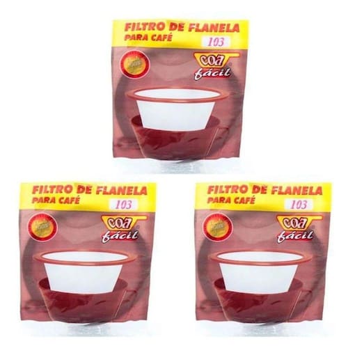 Kit com 3 coador filtro de flanela para café coa fácil 103 Nosso empenho é procurar o que há de mais atual e funcional no mundo culinário e para organização da sua casa, priorizando sempre a qualidade e a versatilidade dos produtos. Kit filtro de flanela para café coa fácil 103 com 3 Seu café com muito mais sabor filtro permanente para porta filtro 103. Substitui com economia os filtros descartáveis.Filtra no tempo certo e o café sai mais gostoso.Produto atóxico. Diâmetro interno: 13 cm Profundidade: 14 cm Material: Flanela de alta resistência e qualidade, 100% algodão Conteúdo da embalagem: 3 filtros de flanela para café coa fácil 103 Gostou Esse produto pode ser seu aguardamos sua compra Marca: Coa Facil