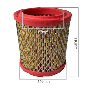 Kit com 3 elementos filtrantes de ar compressor 60 pés Kit com 3 elementos filtrantes de ar compressor 60 pés. Proteção de chama. Dimensões medidas aproximadas : diametro interno 87mm. Diametro externo 110mm. Altura 116mm Marca: Não Informado