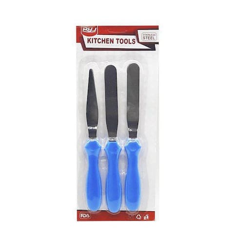 Kit Com 3 Espátulas Reta E Angular Com Degrau - Azul Contém: 01 Kit com 3 Espátulas Reta e Angular com Degrau - Azul As espátulas para confeitaria são itens essenciais na hora de decorar seus bolos. De excelente qualidade e em 3 tipos diferentes, o kit é perfeito para profissionais ou confeiteiros amadores. Além de ajudar a espalhar a cobertura, possibilitam deixar a superfície lisa e homogênea, tanto na parte de cima como nas laterais do bolo. Dê um toque especial nas suas criações e surpreenda seus convidados com uma decoração perfeita Especificações: - Aço inoxidável Medidas: Comprimento das Espátulas: 22,5 cm 3 unidades, sendo duas angulares e uma reta Cabo plástico Cor: Azul Alcança os cantos mais difíceis do bolo Marca: Ydh - Yang Dong Hong