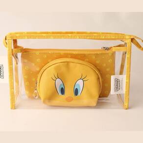 O Kit de 3 Necessaires da coleção Tweety, inspirado no Piu-Piu, é a combinação perfeita de praticidade e estilo para organizar seus itens de beleza. Com três tamanhos versáteis, ele atende a todas as necessidades do dia a dia: a maior (24,5x15x7cm) é transparente, ideal para visualizar e acessar facilmente seus produtos; a média (21x12,5cm) é compacta e perfeita para levar na bolsa; e a menor (14x10x4,5cm) é ideal para itens pequenos como acessórios ou maquiagens essenciais. Feitas com materiais de alta qualidade, elas são resistentes e fáceis de limpar, garantindo organização com muito charme.