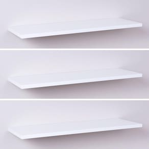 Kit com 3 Prateleiras de Madeira na cor Branco 40cm x 10cm x 1,5xm Com Suporte de Embutir (Invisível) . Cada prateleira do Kit é acompanhada de 2 suportes de tipo de Embutir (Invisível) para fixação. Descrições: Cor: Branco Tamanho: 40cm largura x 10 cm profundidade x 1,5cm espessura Material: Madeira MDP Fixação: de embutir (invisível) Instruções de uso e instalação: Para fácil limpeza, utilize pano levemente umedecido. Não utilizar produtos químicos ou abrasivos. Acompanha embalagem com as instruções de montagem e fixação. Observação: todos os itens de decoração das fotos não acompanham o produto. Ean: 7899983619049