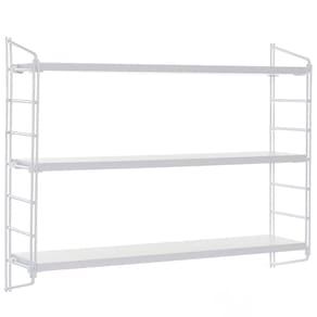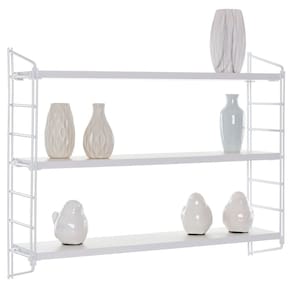 Prateleira em madeira MDP com estrutura em aço e pintura eletrostática multifuncional para sala de estar, sala de jantar, quarto, cozinha e qualquer ambiente, ideal para organização e decoração da casa Acabamento: Pintura Ambiente Principal: Quarto Complexidade da Montagem: Baixa: pode ser montado por uma pessoa sozinha Cor: Branco Cor do Produto: Branco Escala de Brilho: Fosco Itens Inclusos: Kit com 3 Prateleiras Pequenas e manual de montagem Manual de Montagem e Instalação: https://cdn2.madeiramadeira.com.br/prd/metaltru-ltda/2058637-12344%20-%20manual%20de%20montagem.pdf Material Principal: Aço Necessita Montagem: Sim Peso: 3.35 Peso Máximo por Prateleira: 1.5 Possui Espelho: Não Possui Quantidade de Prateleiras: 03 Recomendações de Uso, Manutenção e Limpeza: Limpar com pano umedecido Sistema de Montagem: Parafuso cabeça chata phillips, parafuso cabeça flangeada phillips, presilhas plásticas e bucha Suporta Até (kg): 15