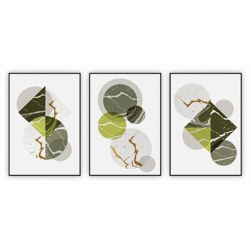Kit Com 3 Quadros Decorativos Abstratos Com Moldura Para Sala Quarto Escritório 67x922 Abstrato 006