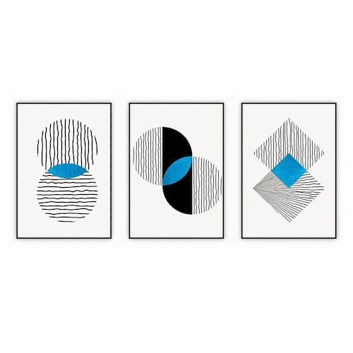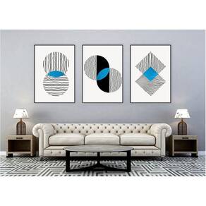Kit Com 3 Quadros Decorativos Abstratos Com Moldura Para Sala Quarto Escritório 67x923 Abstrato 004