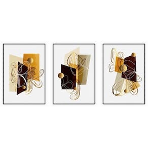 Kit Com 3 Quadros Decorativos Abstratos Com Moldura Para Sala Quarto Escritório 72x1022 Abstrato 001