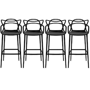 Kit Com 4 Banquetas Aviv Feita Em Polipropileno Fratini Preto
