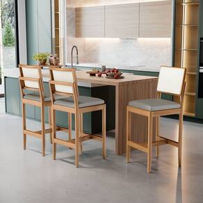 • 4 Banquetas Modelo Milena Em Madeira Com Assentos Estofados (Montadas)