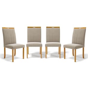 Kit Com 4 Cadeiras Aurora Madeira Maciça Estofadas Para Mesa De Jantar Veludo Bege 102 - Conjunto Kit Com 4 Cadeiras De Sala De Jantar Estofadas