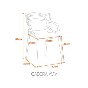 Imponente e detalhista, a cadeira Aviv é ideal para ser utilizada em sua residência ou ambientes corporativos. Por ser uma cadeira monobloco, ela é empilhável, resistente e de fácil limpeza e manutenção. Sua variedade de cores permite que seja combinada com vários ambientes.