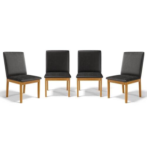 Kit Com 4 Cadeiras Daniela Madeira Maciça Estofada Para Mesa De Jantar Courino Preto 503