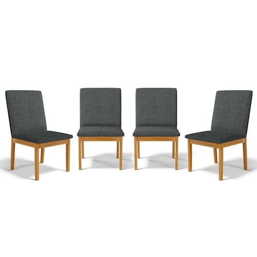 Kit Com 4 Cadeiras Daniela Madeira Maciça Estofada Para Mesa De Jantar Linho Chumbo 406 - Cinza