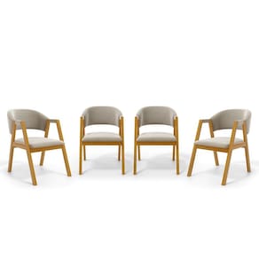 Apresentamos a você a cadeira Leticia, ela é estofada com espuma D-23 no assento, espuma D-23 no encosto e seus pés são feitos de madeiras maciças de eucalipto na cor castanho.