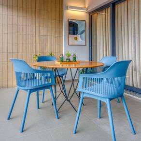 A cadeira Montreal possui assento em polipropileno, com estofado em couro ecológico. Seu encosto, levemente curvado e vazado, traz leveza ao ambiente. Ideal para compor espaços com estilo urbano, que está em alta na decoração!