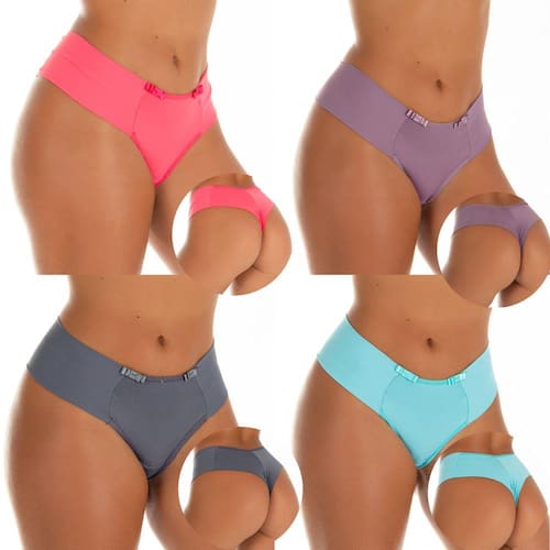 Kit com 4 Calcinhas Confeccionadas em Microfibra de Poliamida de qualidade superior, modelo de lateral larga bem cavadinha em tecido duplo, conforto acima da média.