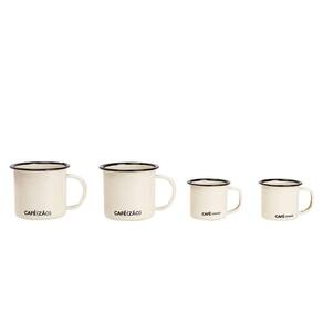 Kit Com 4 Canecas Cafezinho E Cafezao Trazendo o sabor da criatividade para a sua hora do café, nosso Kit Com 4 Canecas Cafezinho e Cafezão chegou trazendo altos goles de estilo! Super presenteável, ele vem em uma embalagem especial revestida de espuma e veludo em sua parte interna. Tudo isso pensado para acomodar perfeitamente suas 4 canecas esmaltadas (de aço inoxidável), sendo 2 canecas com capacidade 80 ml e 2 canecas com capacidade para 100 ml.
