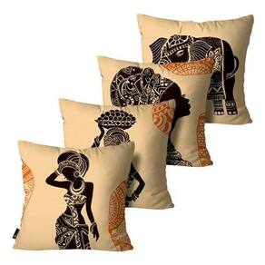 Kit com 04 Capas de Almofadas Decorativa 45X45 - Africana Amarelo