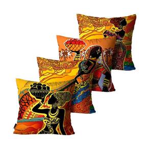 Kit com 4 Capas de Almofadas Africana Colorido 45X45