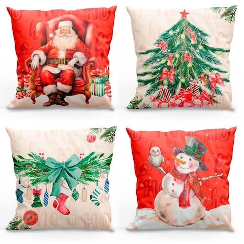 Kit Com 4 Capas De Almofadas Estampadas Natalinas 45cm X 45cm - Decorativas Festas Ceia Fim De Ano Cor Noel Vermelho