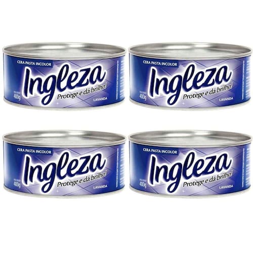 Cera pasta ingleza, a tradicional cera em pasta para proteção com rápida secagem e brilho duradouro, após o polimento com enceradeira. ideal também para polimento de móveis rústicos de madeira.