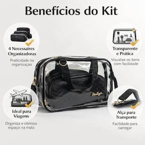 Este kit é ideal para viagens de lazer ou a trabalho, permitindo que você organize seus pertences de forma eficiente. Use-o na academia para separar itens de higiene pessoal, ou para organizar maquiagens e produtos de skincare na penteadeira. Além disso, é perfeito para manter pequenos objetos organizados dentro de bolsas e mochilas, facilitando o seu dia a dia. Uma excelente opção de presente para quem valoriza organização e praticidade.