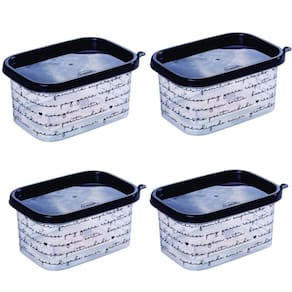 Kit Com 4 Potes De Plástico Decorado Com Tampa Preta - 900Ml