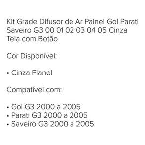 Kit com 4 tela grade difusor ar gol saveiro parati g3 cinza Kit grade difusor de ar painel gol parati saveiro g3 00 01 02 03 04 05 cinza tela com botão