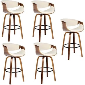 Com design clássico, a banqueta Nicole traz conforto e praticidade para sua casa, além, de proporcionar detalhes amadeirados que garantem elegância para seu ambiente. Banqueta giratória com estrutura de madeira compensada sem ajuste de altura, possui assento e encosto para as costas estofados não reclinável e revestidos em poliuretano (PU) e apoio para pés em aço pintado. Altura do Conjunto: 103 cm Ambiente: null Ambiente Principal: Sala de Jantar Cor: Creme Informação Complementar: 5x Banqueta com Apoio e Base de Madeira Nicole Creme Largura: 54 cm Altura: 103 cm Peso: 7,5 kg Profundidade: 53 cm Necessita Montagem: Sim