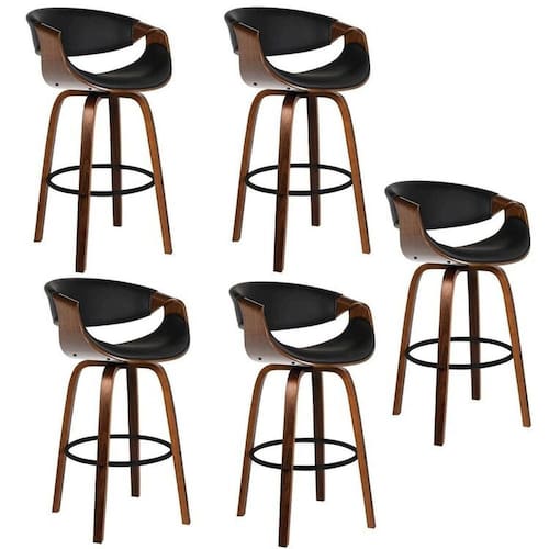 Com design clássico, a banqueta Nicole traz conforto e praticidade para sua casa, além, de proporcionar detalhes amadeirados que garantem elegância para seu ambiente. Banqueta giratória com estrutura de madeira compensada sem ajuste de altura, possui assento e encosto para as costas estofados não reclinável e revestidos em poliuretano (PU) e apoio para pés em aço pintado. Altura do Conjunto: 103 cm Ambiente: null Ambiente Principal: Sala de Jantar Cor: Preto Informação Complementar: 5x Banqueta com Apoio e Base de Madeira Nicole Preto Largura: 54 cm Altura: 103 cm Peso: 7,5 kg Profundidade: 53 cm Necessita Montagem: Sim