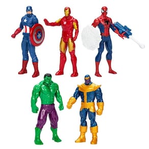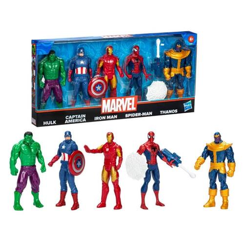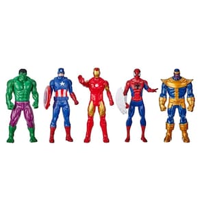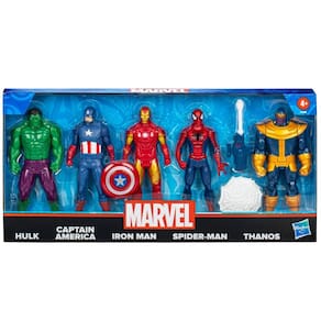 Embarque nessa aventura com os Avengers Vingadores 5 Bonecos 15cm Hasbro. As injustiças não terão chances quando você for para a batalha com um dos super heróis Marvel. Eles estão com os trajes e super-poderes prontos para a batalha. Com inspiração nos filmes Marvel os fãs podem imaginar cenas de ação do Universo Cinematográfico Marvel com as figuras dos Vingadores. Figura dos Vingadores: Hulk, Homem-Aranha, Capitão América, Homem de Ferro, Thanos.