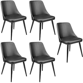 Cadeira em madeira tingida de preto, com assento estofado em PU. Base em aço com pintura à pó. Altura do Conjunto: 76.5 cm Ambiente: null Ambiente Principal: Sala de Jantar Cor: Preto Cor do Produto: Preto Informação Complementar: 5x Cadeira Bárbara Móveis Preto Largura: 51 cm Altura: 76,5 cm Peso: 5,85 kg Profundidade: 58,5 cm Necessita Montagem: Sim