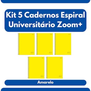 O Kit 5 Cadernos Espiral Tilibra Zoom Amarelo com 96 folhas cada oferece praticidade, qualidade e um design vibrante para o dia a dia escolar, universitário ou . Com capas duras em tom amarelo moderno, une resistência e estilo, garantindo maior durabilidade e personalidade às suas anotações. As folhas pautadas proporcionam organização e conforto na escrita, enquanto o sistema espiral facilita o manuseio, permitindo abertura completa dos cadernos sem danificar as páginas.