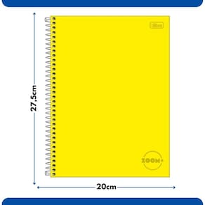- Kit com 5 cadernos de capa dura na cor amarela - Cada caderno possui 96 folhas pautadas - Formato espiral que garante praticidade no uso - Papel de qualidade para escrita confortável - Design moderno e exclusivo da linha Zoom Tilibra