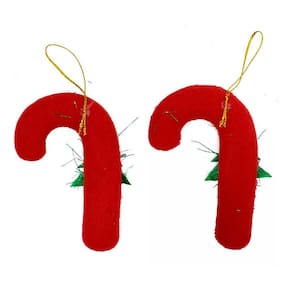 Kit Com 5 pares de bengalas natalina com 10 cm de altura feito de tecido. Vem com cordinha dourada para pendurar em árvore natalina. Material: Poliéster e Plástico.