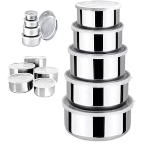Kit Com 5 Potes De Inox Tigelas Com Tampa Hermética Para Armazenamento