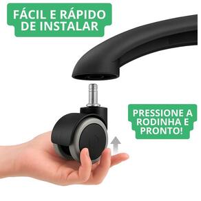 Kit com 5 Rodinhas para Cadeira de Escritório - Silenciosas, Resistentes e de Instalação Rápida Transforme sua cadeira com rodinhas modernas, resistentes e super fáceis de instalar O que você recebe: 5 rodízios universais compatíveis com a maioria das cadeiras de escritório pino padrão de encaixe 11mm x 22mm Instalação Rápida e Sem Ferramentas Basta encaixar e pressionar - em segundos sua cadeira está renovada Principais Benefícios: Silenciosas - deslizam suavemente, sem ruídos incômodos Não riscam o piso - ideais para madeira, cerâmica, porcelanato ou laminado Giro 360 - mais liberdade de movimento e conforto Alta resistência - suporte de peso e durabilidade incomparável Design moderno - valoriza o visual da sua cadeira Especificações Técnicas: Pino de encaixe universal 11mm x 22mm Material: Poliuretano + estrutura reforçada Diâmetro da roda: 50mm Cor: Preto com aro cinza