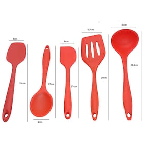 Kit Com 5 Utensílios De Cozinha Em Silicone Para Servir Vermelho