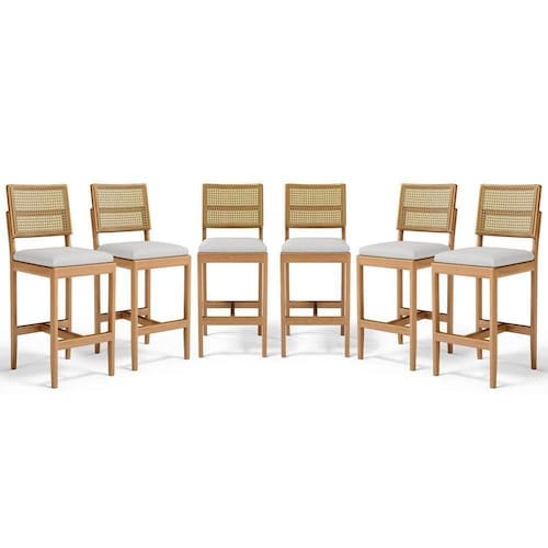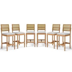 Kit Com 6 Banqueta Milena Madeira Maciça Assento Estofado Encosto De Tela Palha Sextavada Linho Cinza 407 - Banquetas Banquinhos Em Madeira Maciça Encosto De Tela Palha Sextavada