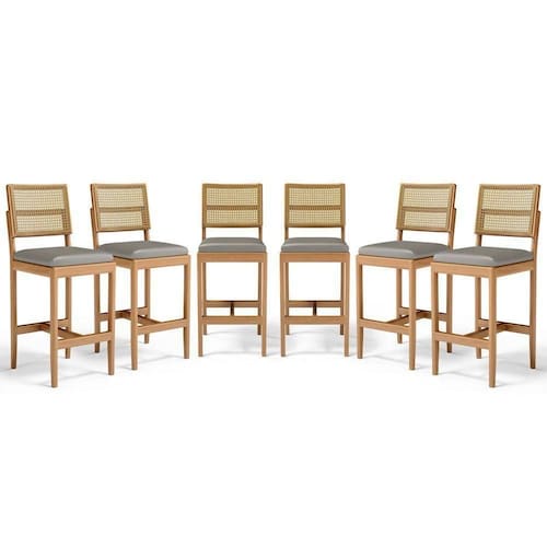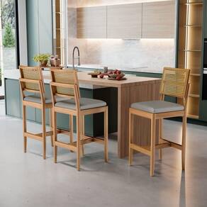 - 6 Banquetas Modelo Milena Em Madeira Com Assentos Estofados (Montadas)
