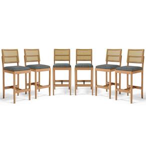 Madeira-MadeiraKit Com 6 Banqueta Milena Madeira Maciça Assento Estofado Encosto De Tela Palha Sextavada Courino Preto 503 - Banquetas Banquinhos Em Madeira Maciça Encosto De Tela Palha Sextavada