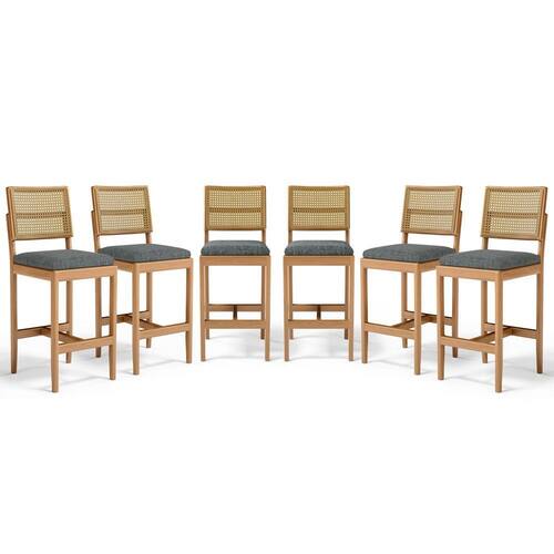 • 6 Banquetas Modelo Milena Em Madeira Com Assentos Estofados (Montadas)