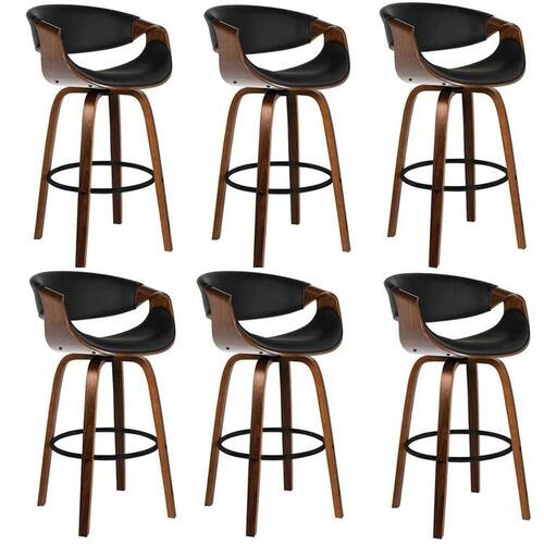Com design clássico, a banqueta Nicole traz conforto e praticidade para sua casa, além, de proporcionar detalhes amadeirados que garantem elegância para seu ambiente. Banqueta giratória com estrutura de madeira compensada sem ajuste de altura, possui assento e encosto para as costas estofados não reclinável e revestidos em poliuretano (PU) e apoio para pés em aço pintado. Altura do Conjunto: 103 cm Ambiente: null Ambiente Principal: Sala de Jantar Cor: Preto Informação Complementar: 6x Banqueta com Apoio e Base de Madeira Nicole Preto Largura: 54 cm Altura: 103 cm Peso: 7,5 kg Profundidade: 53 cm Necessita Montagem: Sim