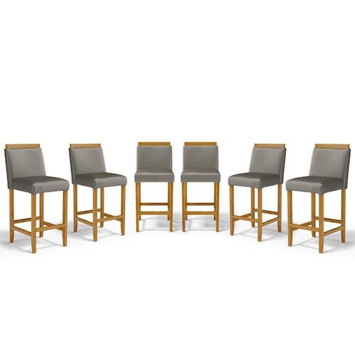- 6 Banquetas Modelo Eloá Em Madeira Com Assentos Estofados (Montadas)