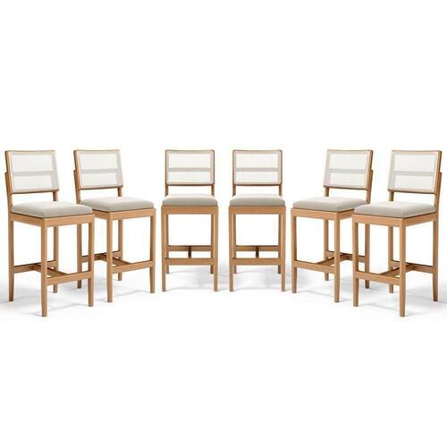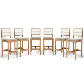 - 6 Banquetas Modelo Milena Em Madeira Com Assentos Estofados (Montadas)