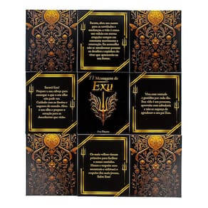 Kit com 6 Box 77 Mensagens Espirituais Diárias de Exu Kit 6 Box 77 Mensagens de Exu Os textos de 77 Mensagens de Exu é eficaz em transmitir a proposta de um oráculo que busca auxiliar o autoconhecimento e o direcionamento espiritual. Este Box de mensagens tem o objetivo de auxiliar no direcionamento espiritual de assuntos relacionados a amor, dinheiro, família e relacionamentos em geral. Exu traz esperança e motivação para te ajudar nas questões básicas da vida, sendo necessário que suas mensagens sejam interpretadas com plenitude. Para que essa conexão ocorra de forma natural, sugerimos escolher um local tranquilo e fazer sua prece favorita antes de escolher a mensagem na caixinha, mentalizando bons pensamentos e buscando sempre o bem acima de todas as coisas. Esse ritual te auxiliará no processo de autoconhecimento e possibilitará o seu crescimento espiritual e emocional. Que a luz de Exu ilumine seus caminhos. Laroiê As Mensagens de Exu trazem o acalento espiritual, força para o enfrentamento dos Desafios diários, renovação emocional, motivação para descoberta de novos caminhos, incentivam a prosperidade e são carregadas de muito amor. Mentalize os seus melhores desejos, escolha uma carta e abra o coração para receber a mensagem. Título: 77 Mensagens de Exu Gênero: espiritualidade, Oráculo. Tamanho da Mensagem: 7,50 x 9,00 cm Tamanho da caixa Box : 8,00 cm x 10 cm x 2,80 cm Material: Papel Cartão Peso: 180 g Cores: Preto e Dourado Edição: 1 de 2025 Tire todas as suas dúvidas antes de concluir a compra. Iremos responder o mais breve possível. Embalagem de Envio: Caixa de papelão ondulado, plástico bolha, conforme necessidade do produto. Consulte nossos preços e condições para vendas. Ideal para o seu ambiente. Ótima resistência e durabilidade Respostas das dúvidas mais frequentes na ordem: R1: Já realizamos milhares de entregas em todo o Brasil, somos especialistas no que fazemos. R2: Assim que seu pedido for despachado, esta plataforma envia para você o código de rastreamento. R3: Enviamos o produto 100% inspecionado e conferido em nosso checkout e são embalados em embalagem de papelão e plástico bolha. R4: O tempo de entrega irá depender totalmente do seu CEP, todos os nossos produtos saem de Capital. R5: Iremos despachar o seu produto o mais rápido possível, assim que for confirmado pela plataforma, enviamos em até 24h. R6: Nós queremos a sua satisfação, qualquer problema iremos te auxiliar em nossos canais de comunicações.